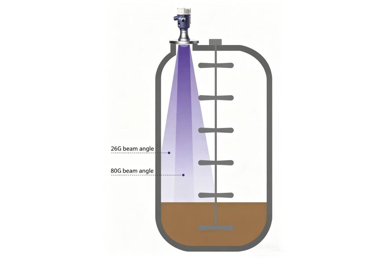 Herkömmliche Radare mit niedrigerer Frequenz haben oft Probleme mit weiten Abstrahlwinkeln. Ein weiter Strahl trifft auf Behälterwände und Hindernisse, was falsche Echos erzeugt. Zudem sind niedrigere Frequenzen anfälliger für Streuung durch Staub oder Dampf. RETTAR nutzt daher 80GHz-Technologie. Diese bietet zwei Vorteile: einen schmalen 3°-Strahlwinkel für weniger Wandreflexionen und Wellenlängen, die Staub und Dampf hochauflösend durchdringen.
